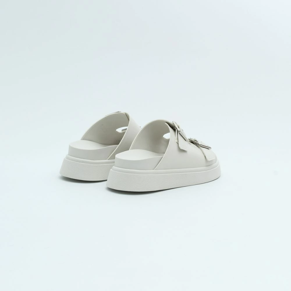 Sandália rasteira com taxas em dourado, produzida em napa 100% sintética e altura do solado de 2.5 cm.