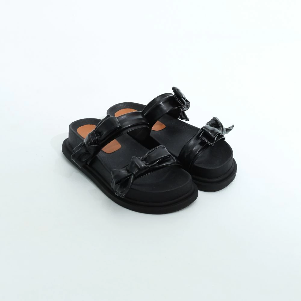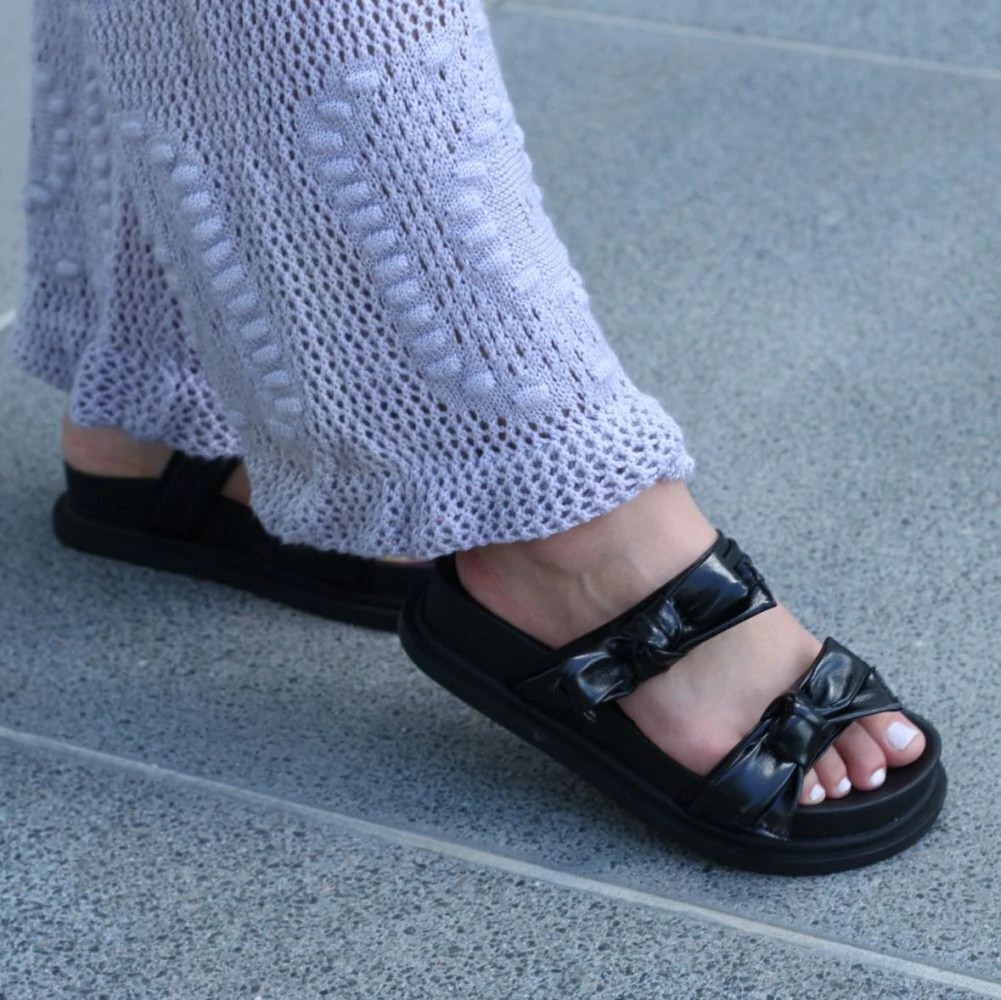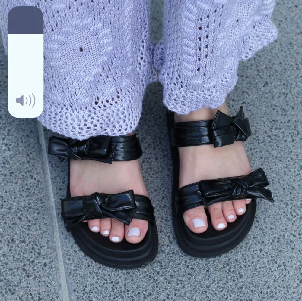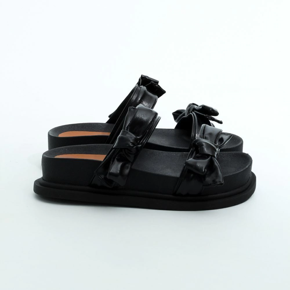 Papete com palmilha anatômica, cabedal com laços e altura do solado de 4 cm laços delicados.