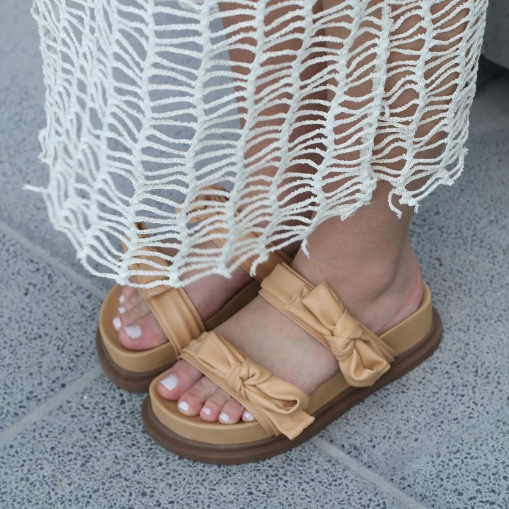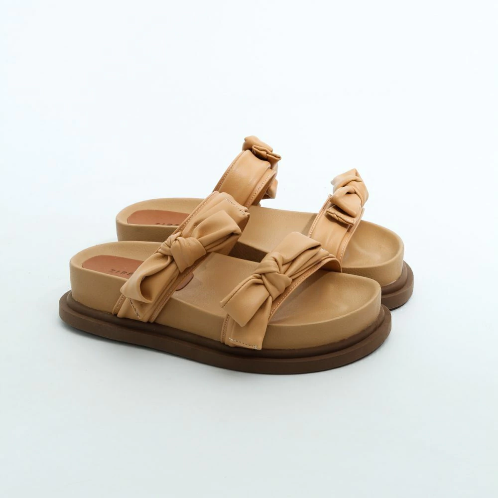 Papete com palmilha anatômica, cabedal com laços e altura do solado de 4 cm laços delicados.